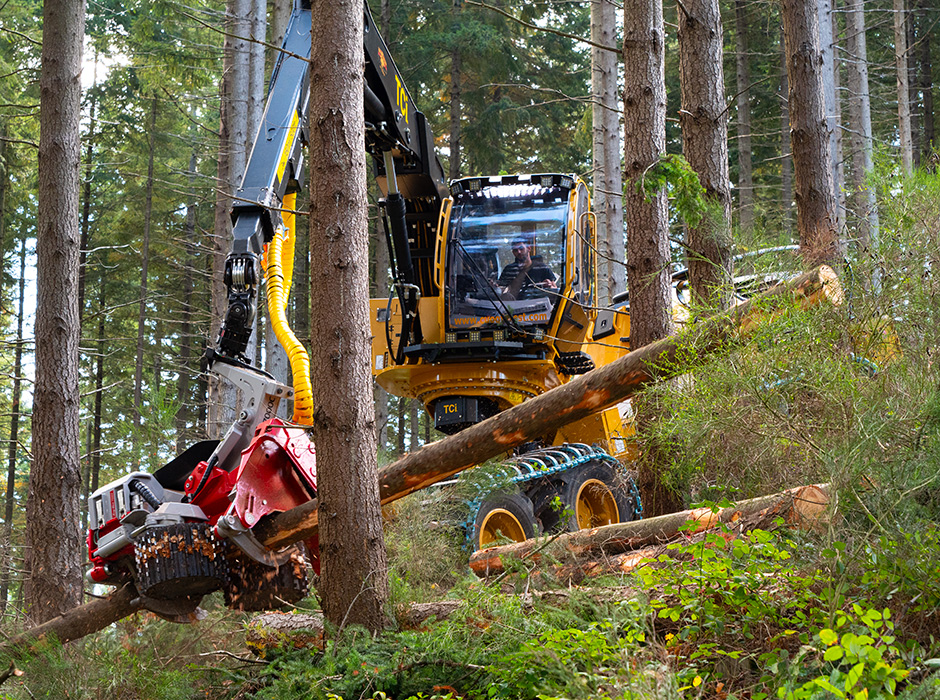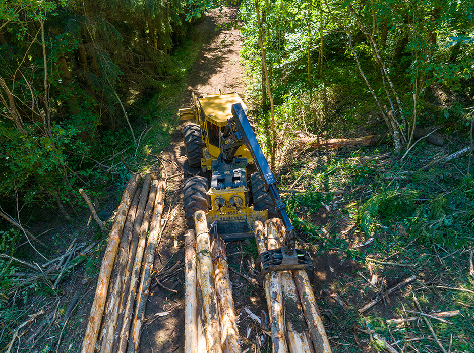 The TCi 612 skidder transports processed tree-length logs to 200 metres to the public roadside.