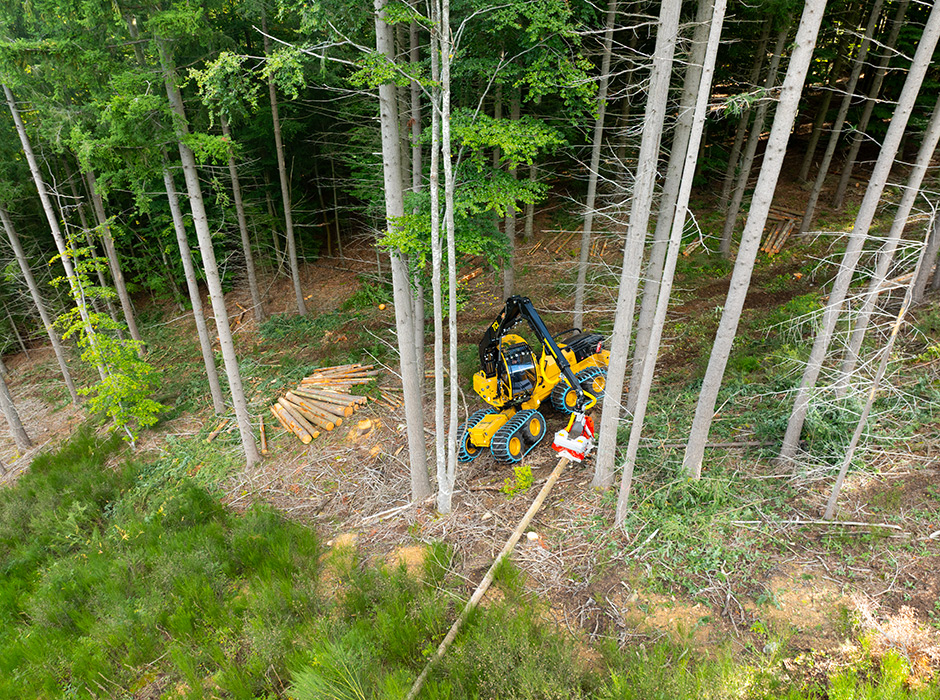 Aurélien notes that the 1165 is very stable and operator visibility is excellent, a great advantage in tight selective felling.