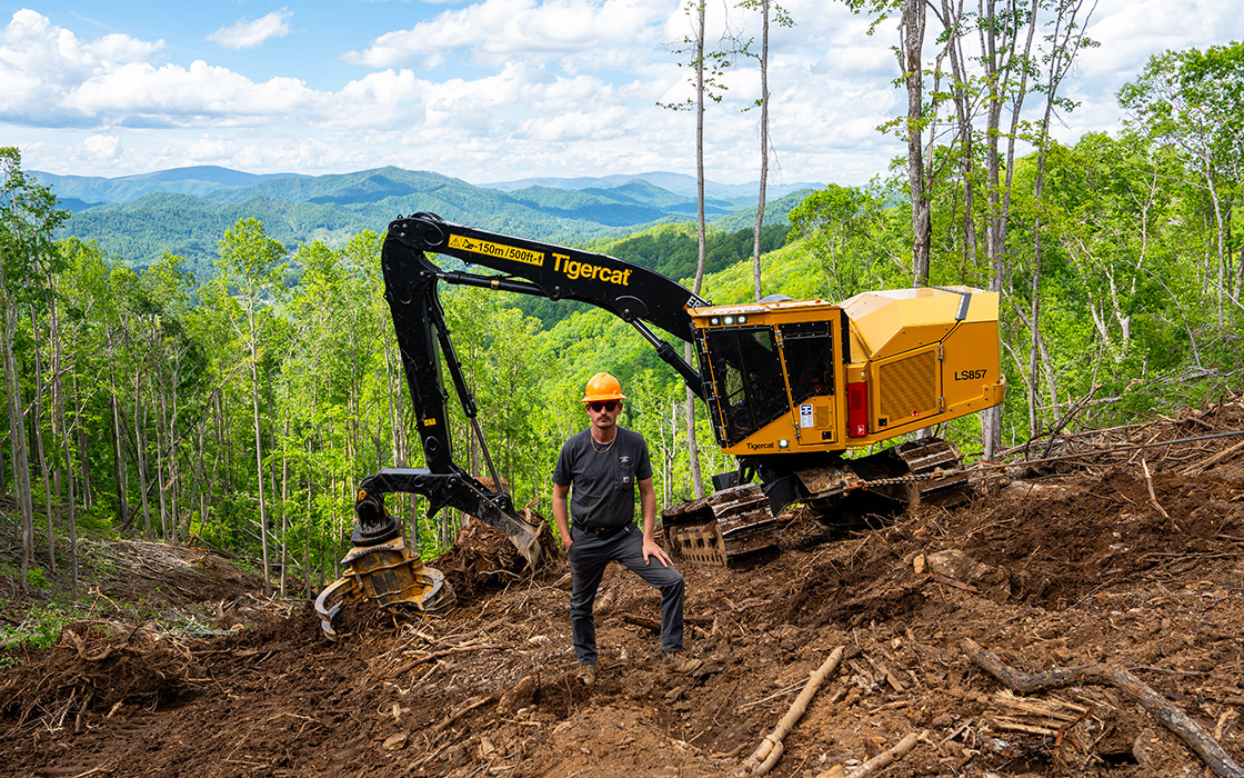 BTB visita a Chase Fox en las montañas del oeste de Carolina del Norte para ver al LS857 de Tigercat trabajando en una compleja aplicación de limpieza posterior a tormentas en un terreno extremadamente empinado. LEER MÁS