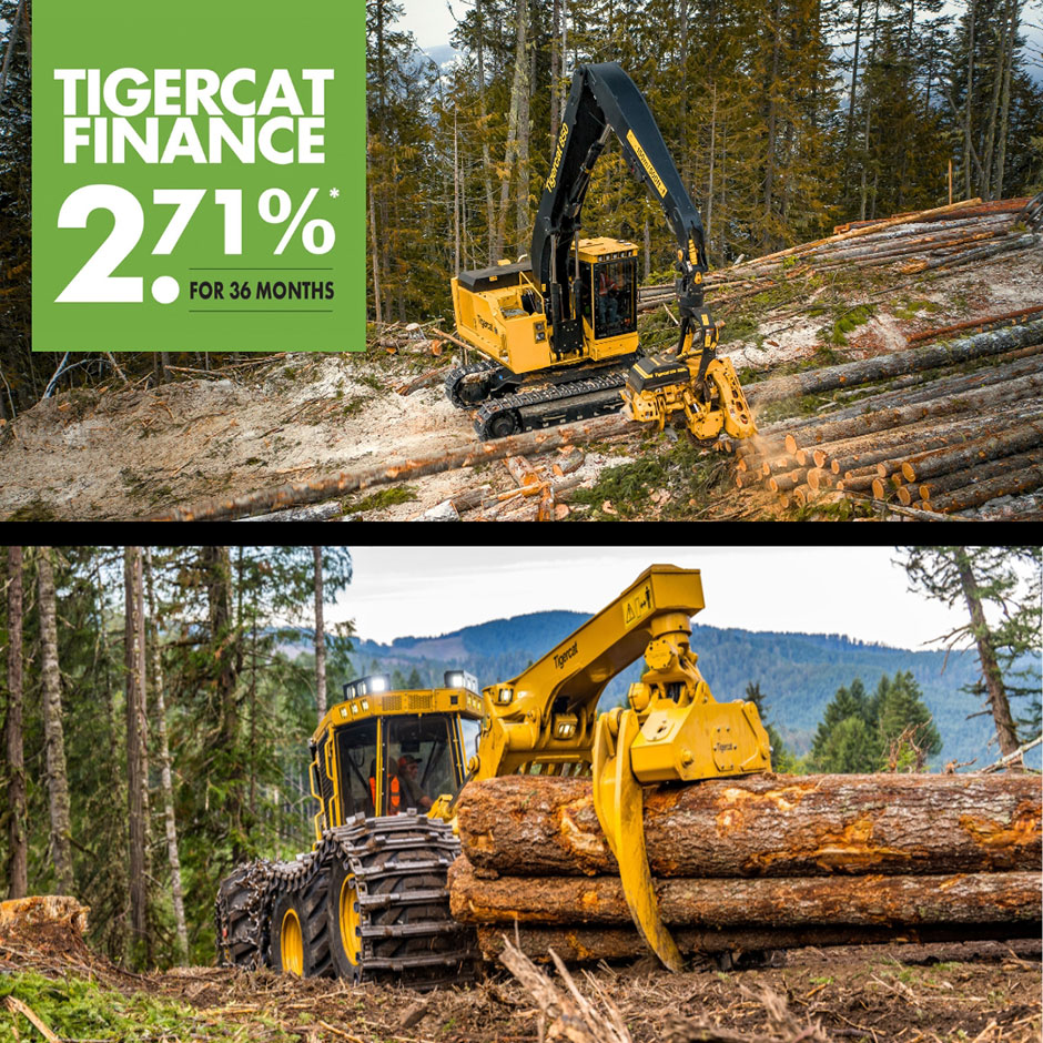 * Finance offers are available on approved credit for a limited time. Offers subject to change, continuation or cancellation at any time without notice. This program is available in Canada only and is applicable to Tigercat-TCi OEM products only. Non-Tigercat-TCi OEM products such as attachments may not be applicable for the reduced rate. Contact your dealer for more program details.