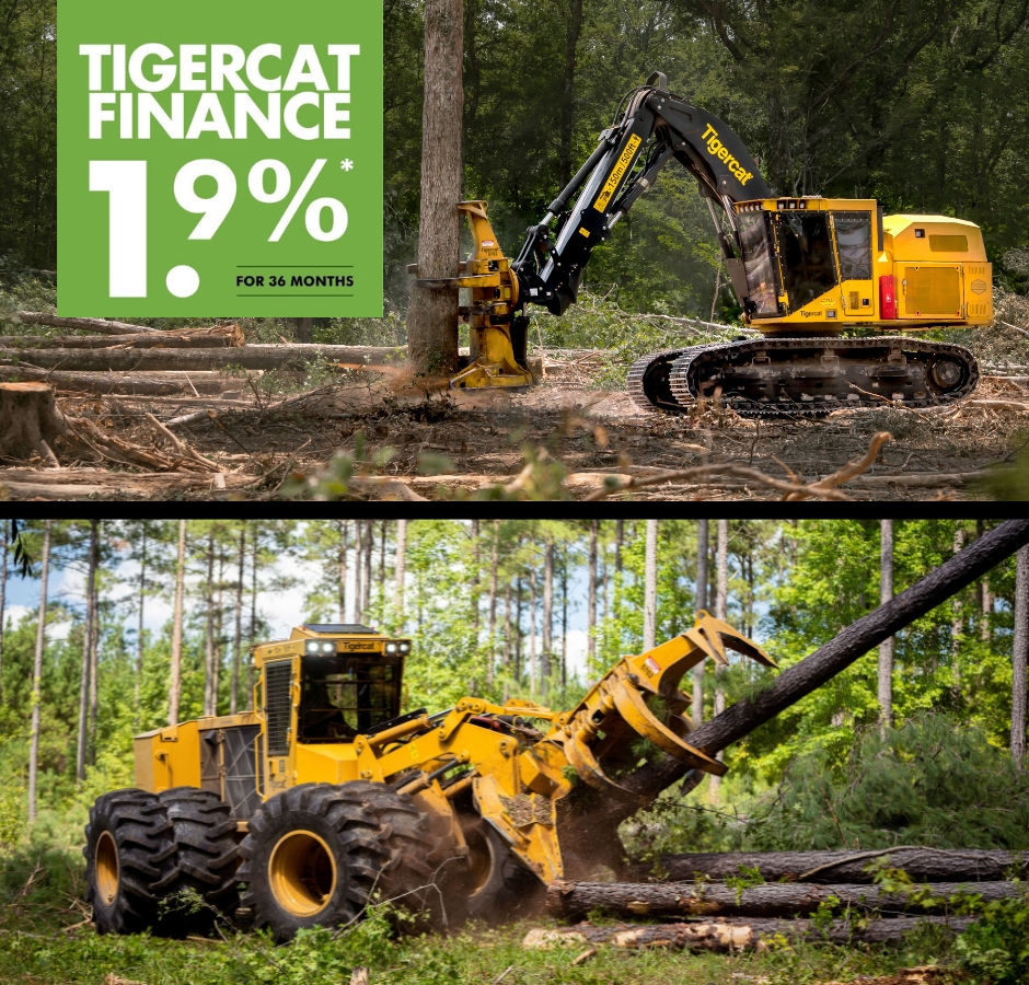 Tigercat Finance is offering the following financing programs for all 700 G-series wheel feller bunchers and 800 series track machines:
